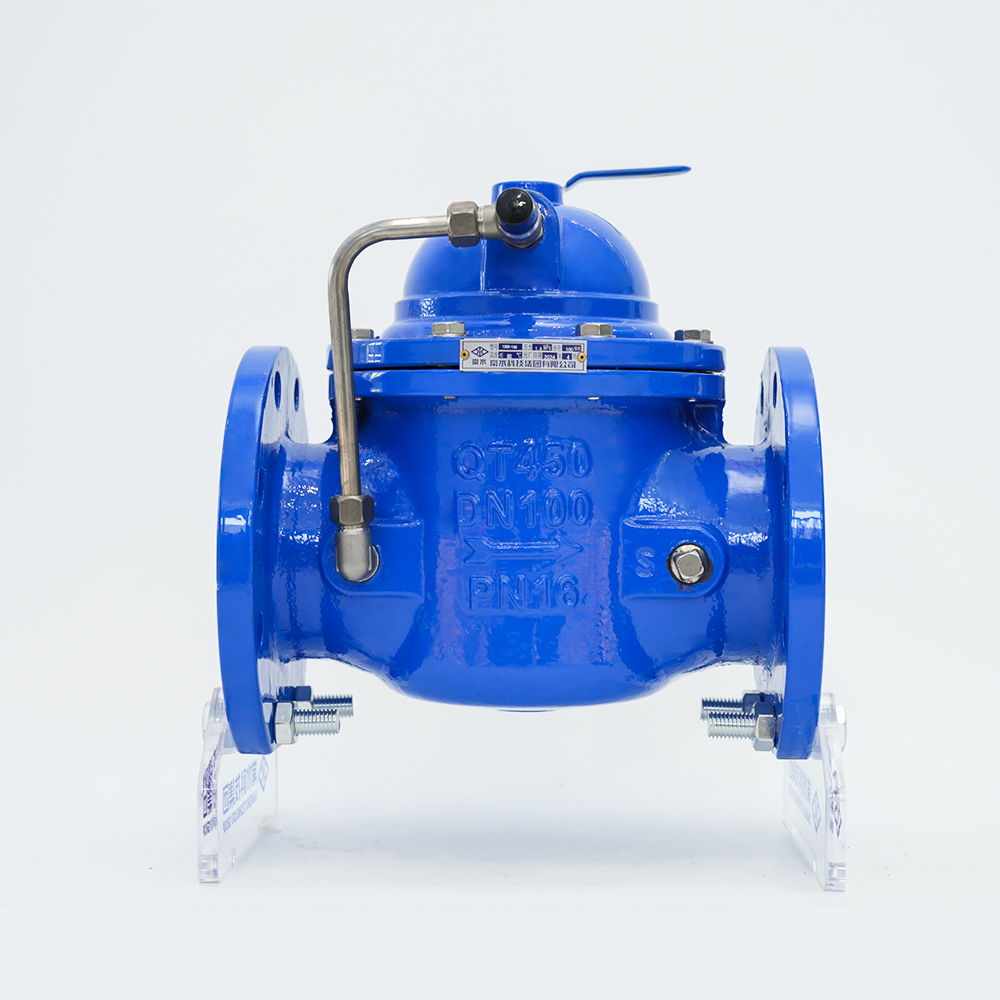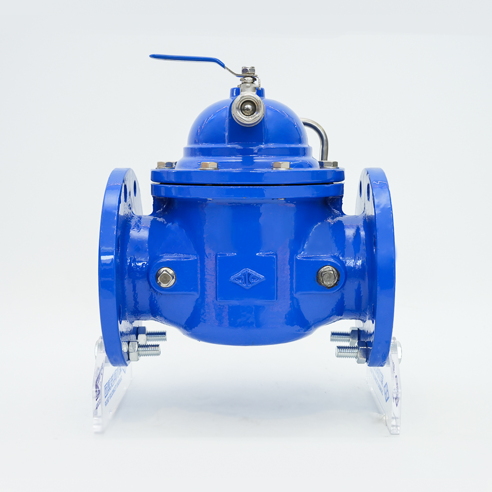 De hydraulische regelklep is een klep die wordt bestuurd door waterdruk. Het bestaat uit een hoofdklep en de bijbehorende leiding, een stuurklep, een naaldklep, een kogelklep en een manometer. Afhankelijk van het doel, de functie en de plaats van gebruik kan het evolueren naar op afstand bediende vlotterkleppen, drukreduceerkleppen, langzaam sluitende terugslagkleppen, stroomregelkleppen, overdrukkleppen, hydraulisch-elektrische regelkleppen, enz. Hydraulische regelkleppen zijn onderverdeeld in membraantype en zuigertype. Hun werkingsprincipes zijn hetzelfde. Ze worden aangedreven door het drukverschil SP tussen stroomopwaarts en stroomafwaarts en worden geregeld door de stuurklep zodat het membraan (zuiger) hydraulisch differentieel werkt en volledig automatisch hydraulisch wordt afgesteld. De hoofdklepschijf is volledig open of volledig gesloten of bevindt zich in een geregelde toestand. Wanneer het drukwater dat de regelkamer boven het membraan (zuiger) binnenkomt, wordt afgevoerd naar de atmosfeer of het stroomafwaartse lagedrukgebied, is de drukwaarde die op de onderkant van de klepschijf en onder het membraan inwerkt groter dan de drukwaarde erboven, zodat de hoofdklepschijf naar volledig open positie wordt geduwd; wanneer het drukwater dat de controlekamer boven het membraan (zuiger) binnenkomt, niet kan worden afgevoerd naar de atmosfeer of het stroomafwaartse lagedrukgebied, de kracht die op de membraanzuiger (zuiger) inwerkt). De drukwaarde hierboven is groter dan de drukwaarde eronder, dus de hoofdklepschijf wordt in de volledig gesloten positie gedrukt. Wanneer de drukwaarde in de regelkamer boven het membraan (zuiger) tussen de inlaatdruk en de uitlaatdruk ligt, bevindt de hoofdklepschijf zich in een afstelstatus en hangt de afstelpositie af van het koppelingsregeleffect van de naaldklep en de verstelbare stuurklep in het leidingsysteem. De verstelbare stuurklep kan zijn eigen kleine kleppoort openen of sluiten door de stroomafwaartse uitlaatdruk en daarmee veranderen, waardoor de druk die boven het membraan (zuiger) wordt geregeld verandert en de afstelpositie van de hoofdklepschijf wordt geregeld.